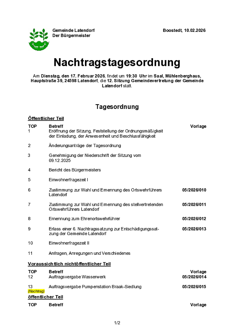 Latendorf: Sitzung der Gemeindevertretung